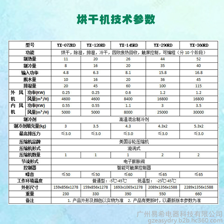 依靠电能吸收空气中的免费热量并将其转移到烘干房内(输入1度电能量能产生4度电热能),实现烘干房温度提高,配合相应的除湿设备实现物料的干燥。
