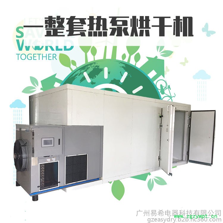 依靠电能吸收空气中的免费热量并将其转移到烘干房内(输入1度电能量能产生4度电热能),实现烘干房温度提高,配合相应的除湿设备实现物料的干燥。