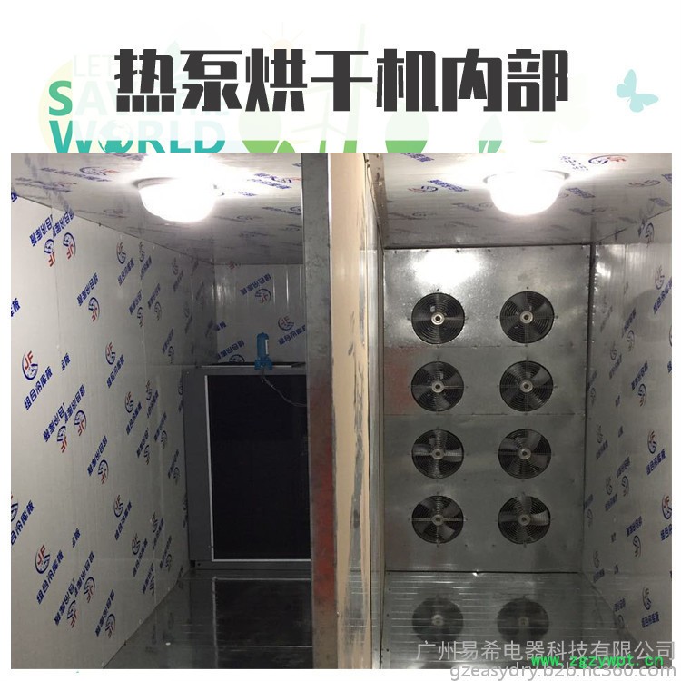 依靠电能吸收空气中的免费热量并将其转移到烘干房内(输入1度电能量能产生4度电热能),实现烘干房温度提高,配合相应的除湿设备实现物料的干燥。