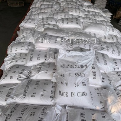 硫酸锰的用途详细介绍:主要用于微量元素肥料之一,可用作基肥,浸种、拌种、追肥以及叶面的喷洒,能促进作物的生长增加产量。农业上肥料,也是植物合成叶绿素的催化剂。施以适量的硫酸锰溶液,可使多种经济作物生长良好,增加产量。 硫酸锰拌种预计效果:用硫酸锰溶液拌种可以提高千粒重,增产10%~15%。 拌种方法:播种前先将0.2公斤硫酸锰溶解在0.9公斤清水中,然后拌50公斤麦种。在牧业和饲料工业中,用作饲料添加剂,可使得畜禽发育良好,并有催肥效果。此外,还可用于造纸、陶瓷、印染、矿石浮选;电.解锰的生产原料以及制造其他锰盐的原料。也用于电池、冶炼催化剂、分析试剂、添加剂。