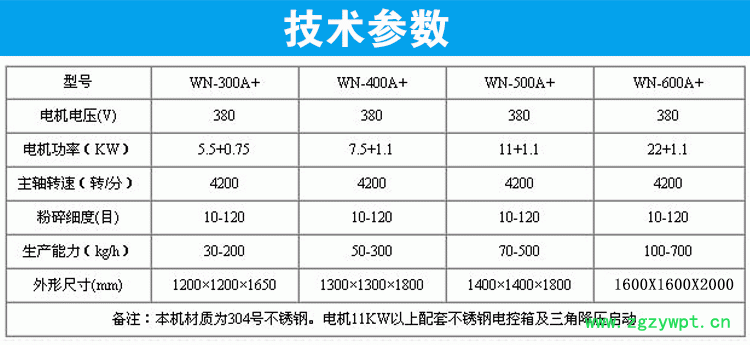 接由主机磨腔中排出、粒度大小通过更换不同孔径的网筛获得,另外该机为全不锈钢。机壳内壁全部经机加工达到