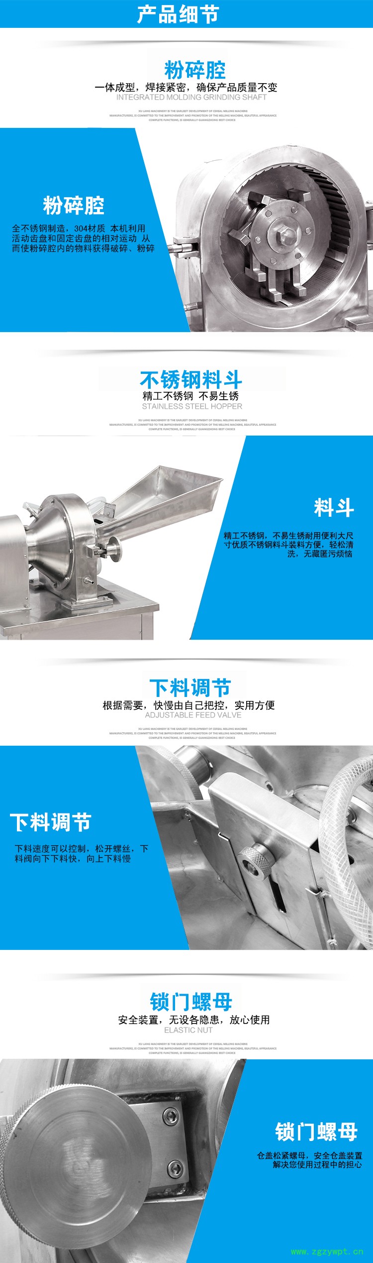 注意事项: 1.本机在工作时确保有专人看管。 2.被粉碎的物料颗粒不宜过大,如遇闷机(即机器因负荷过大导致转速明显变慢或者被动地停止运转),应该马上断掉电源。 3.如果被粉碎的颗粒过大,应该要经过全能破碎机的破碎后,再用本机粉碎。