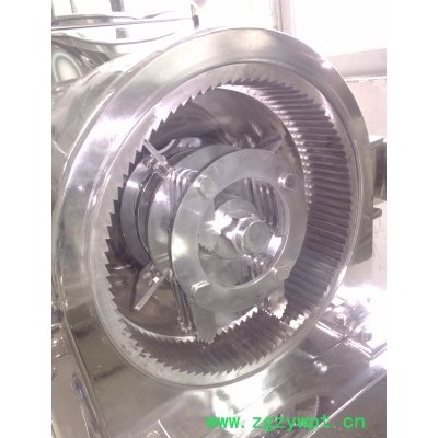 广州旭朗SZFJ系列中草药粉碎机组由加料斗,分级轮,粉碎刀片,齿圈,粉碎电机,出料口,风叶,集料箱,吸尘箱等部分组成,物料由加料斗进入粉碎室,通过高速旋转的刀片进行粉碎,调节分级轮与分级盘的距离来达到所要求的物料细度,高速旋转的风叶把达到要求的物料从粉碎室引到集料箱布袋中,没有达到要求的物料继续在粉碎室中粉碎,集料箱布袋产生的粉尘由吸尘箱收集。广州旭朗SZFJ系列中草药粉碎机组按“GMP”标准设计,结构简单,操作清理方便,噪音小,产量高,机器全部用**不锈钢材料制造,粉碎过程中无粉尘飞扬。