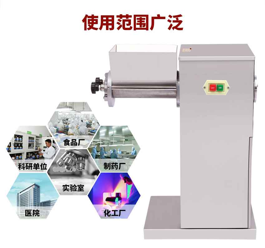 适用于制药、化工、食品、科研单位、实验室、医院、小型保健品厂小批量生产。该机也是配合压片机使用的前一个步骤使用。