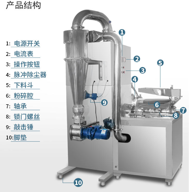 1、产量高,效果好,本机采用分级粉碎方式,先粗碎,后细粉,延长了粉碎行程,使物料在流动的过程中层层粉碎,大大的提高了工作效率及粉碎细度。