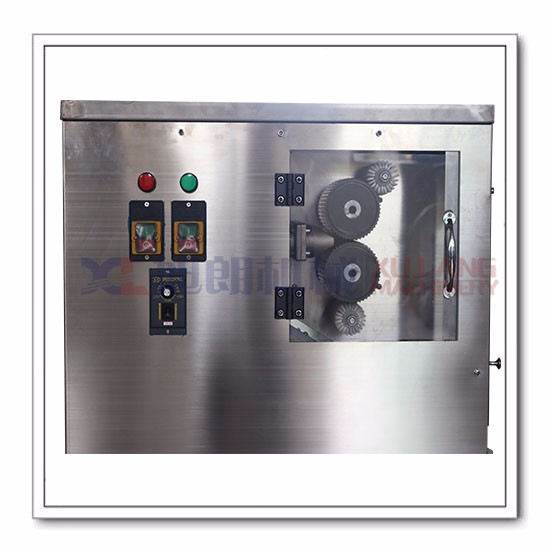 3、制丸部分的搓丸和切丸机构在一个变速箱内,机件润滑条件良好,切丸速度可以通过无级变速机的旋纽调节,使滚刀可获得6-30转/分的转速,直到切丸速度与出条速度匹配。