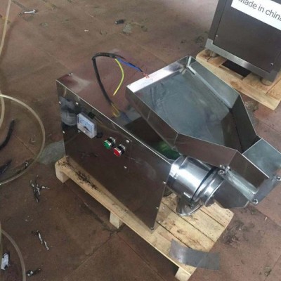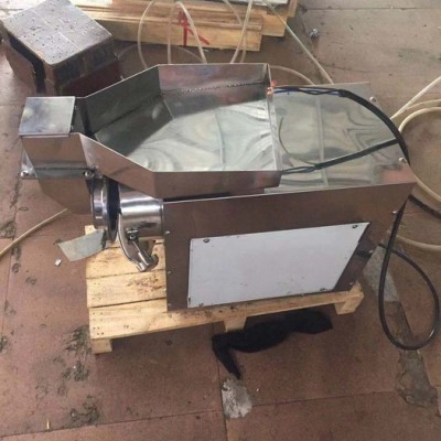 中药粉碎机它由粉碎室、锤片刀具、齿内环等组成。物料通过投料口进入粉碎室,在锤片刀具和齿内环之间被挤压、撞击、研磨,由于甩锤片运动的同时也引起了气流的流动,所以气流带动着被粉碎的物料经过筛网进入滤袋过滤,空气被排出,物料、粉尘被收集,完成粉碎。细度高,对物料适应性强,由于该型机采用了独特的研磨方式,尤其是对难以粉碎的纤维性、高韧性物料、高硬度物料,均能获得良好的粉碎效果。