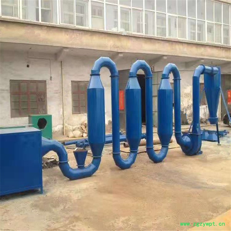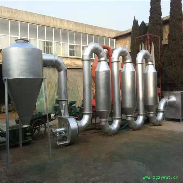 ·不锈钢 气流干燥机干燥强度大:气流干燥机由于气流速度高,物料在气相中分散良好,可以把物料全部表面作为干燥的有效面积,因此, 干燥有限面积大大增加.同时,由于干燥时分散和搅动作用,使气化表面不断更新,因此,干燥的传热过程强度大. · 气流烘干机干燥时间短:物料与空气的接触时间极短,干燥时间一般在0.5~5秒,对于热敏性或低熔点物料不会造成过热或分解而影响其质量. · 气流干燥机热效率高:气流干燥采用物料与气体并流操作,从始到终物料温度和空气温度都能达到合理状态,干燥时间短,因而可使用较高的烘干温度. · 气流烘干机适用范围广、产量高、降水幅度大;结构简单、站地面积小、投资和维修成本低. · 气流烘干机热风来源: 燃油炉、燃气炉、燃煤热风炉、蒸汽换热器.