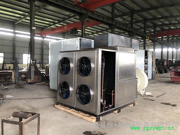 2.释放热量,外机吸收的热量再由烘干房内的内机释放出来,此时内机吹出热风,热风的温度根据加工阶段的工艺要求可进行设定。
