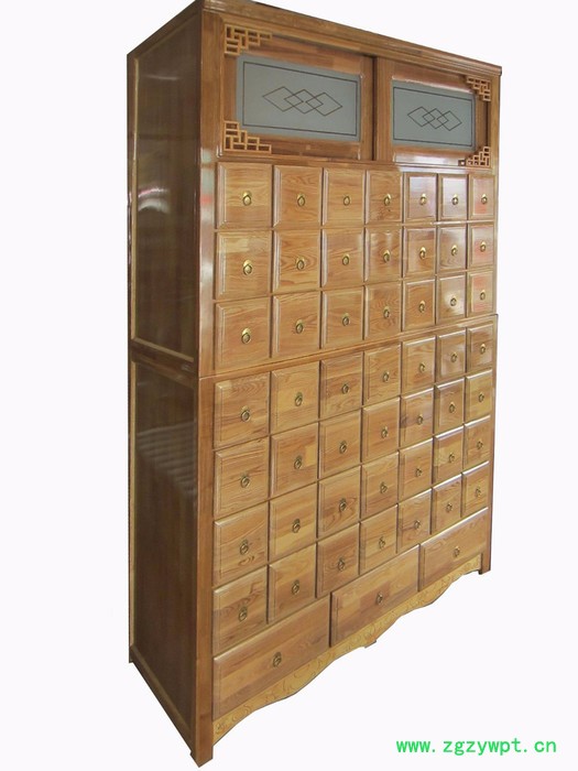 产品规格:药柜为上下分体,横六竖八抽屉排列,每个小抽屉可以放三味药,每个药柜可以放144味药。