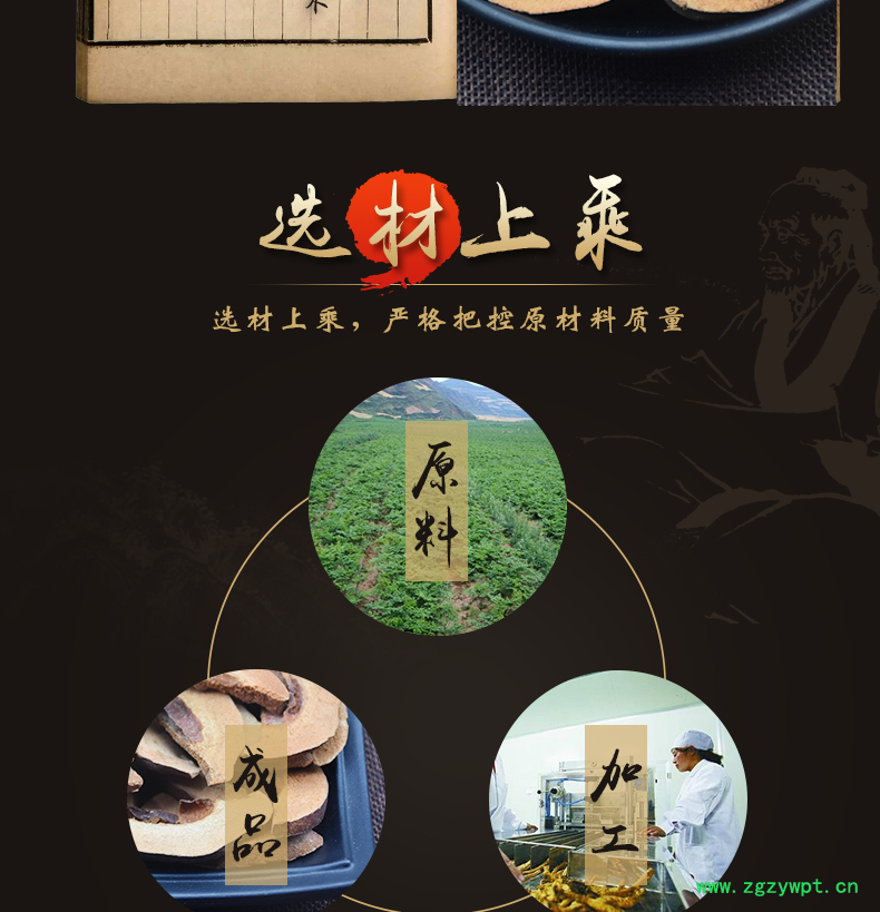 华珍品 本着"地道药材、源于自然、造福人民"的宗旨,严格执行中药材管理规范,以确保中药材质量。