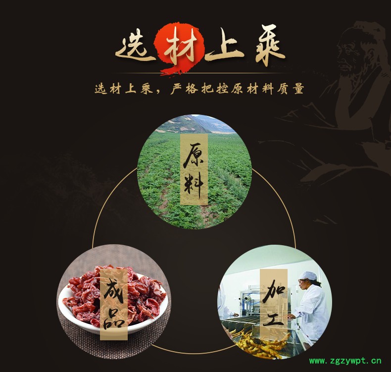 华珍品 本着"地道药材、源于自然、造福人民"的宗旨,严格执行中药材管理规范,以确保中药材质量。