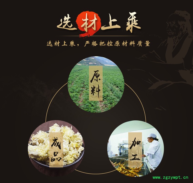 华珍品 本着"地道药材、源于自然、造福人民"的宗旨,严格执行中药材管理规范,以确保中药材质量。