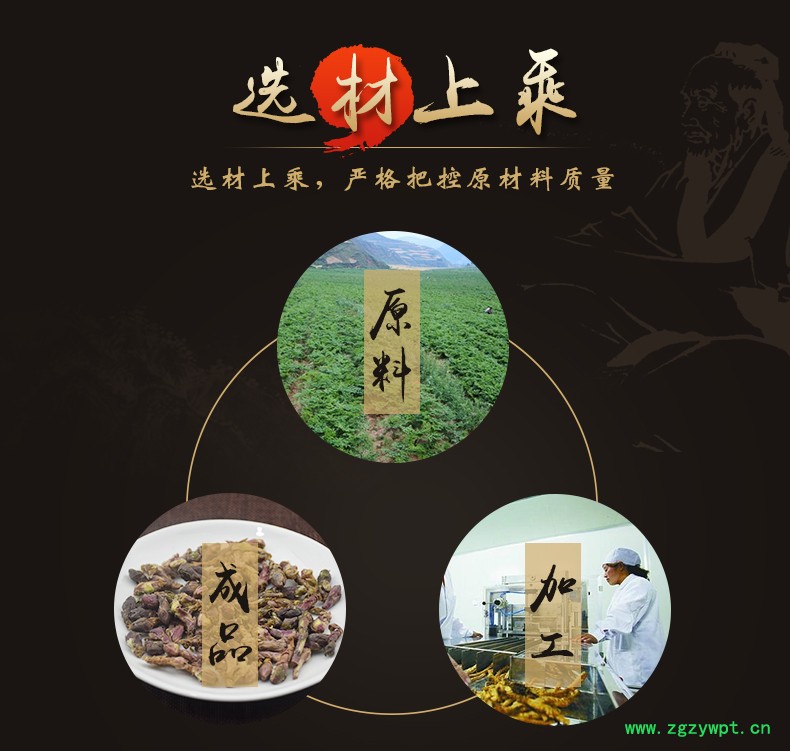 华珍品 本着"地道药材、源于自然、造福人民"的宗旨,严格执行中药材管理规范,以确保中药材质量。