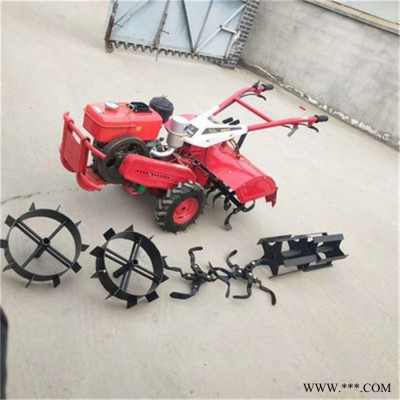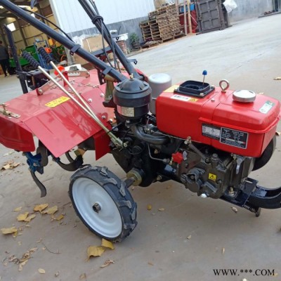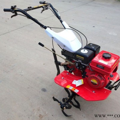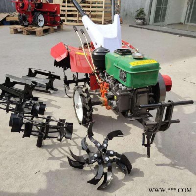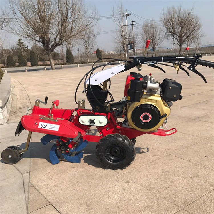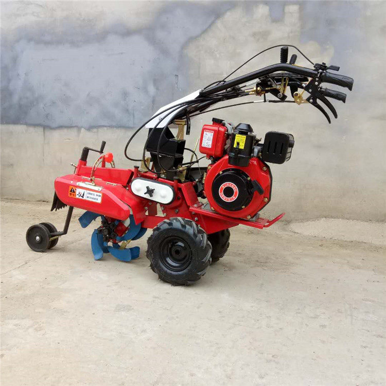 本机器包括机架、可调高低扶手,机架上设有(风冷或水冷)柴油机或汽油机、机架和扶手上设置有变速箱,变速箱的输出轴上设置有能够沿轴移动的驱动轮或链轨.传动方式主要有:全齿轮传动、皮带传动、链条传动三种传动方式.该机具有重量轻,油耗低、相对功率大,结构紧凑、机动性强、操纵轻便灵活的特点。可爬坡、越埂、阶梯性强。广泛适用于平原、山区、丘陵的旱地、水田、果园、菜地、烟地的深旋耕、浅旋耕、犁耕。配上相应机具可进行旱地旋耕、水田旋耕、抽水、开沟、喷淋、喷药除草碎土等作业,还可牵引拖车进行短途运输,是大中型农机无法**的多功能,工作稳定可靠、使用寿命长、维修方便等特点。是进入农民家庭的田园管理机。