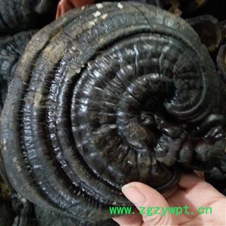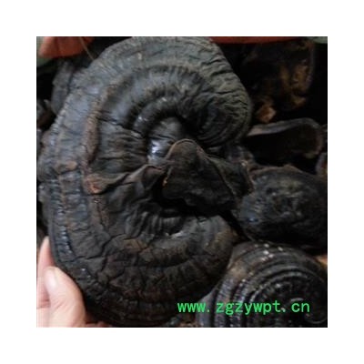性状:上表面紫黑色,有纹理,背面黄灰色,断面有灵芝木纹