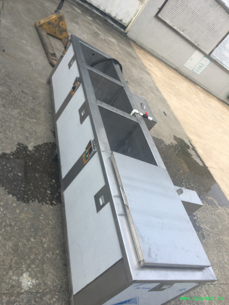 1.2、液箱采用单层结构,采用1.5mm 厚的304不锈钢板制作(可按要求颜色喷涂油漆);内部用隔板分成几个区域,分别实现对清洗液的过滤、滤油、分油;液箱设有补水口、排液口、溢水口。底部为两边向中间倾斜,清洗液从液箱底部的排液口集中排出。