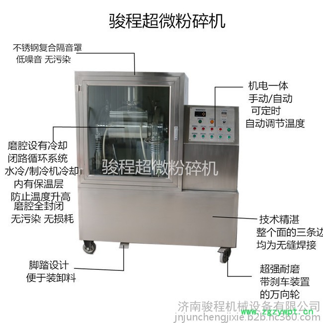 济南骏程中药超微粉碎机介质填充率高,单位时间内作用次数高,在强烈激振力的作用下,粉碎能力强,对于纤维状、高韧性、高强度、含油率高、含糖量高的物料都可以粉碎至细胞级微粉。公司一直致力于中药超微粉碎技术的研发,公司为满足不同客户的不同生产需求研发生产出JCWF-6A、JCWF-6J、JCWF-12A、 JCWF-25A、JCWF-50A、JCWF-100A、JCWF-100B等各种型号的超微粉碎设备。每种型号的超微粉碎机都可以根据生产需要配置适合的低温制冷设备。公司历时半年多的时间,精心研制出JCWF-50型全自动翻转式超微粉碎机,JCWF-100B坐式超微粉碎机,大大提高了粉碎效率,操作更加简易。