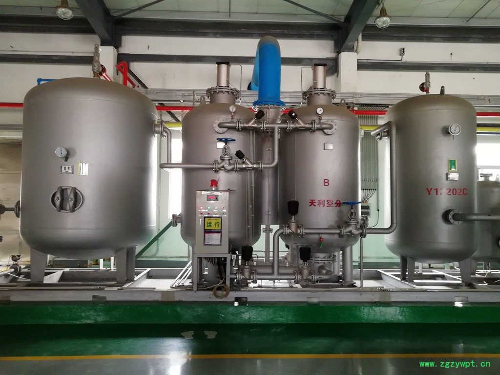 氮,另一塔脱附再生,通过PLC程序自动控制,使两塔交替循环工作,以实现连续生产高品质氮气之目的。