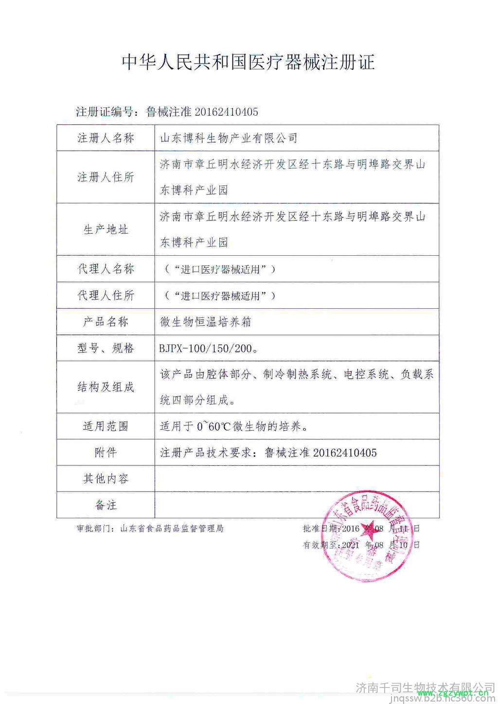 注册证编号:鲁械注准20162410405