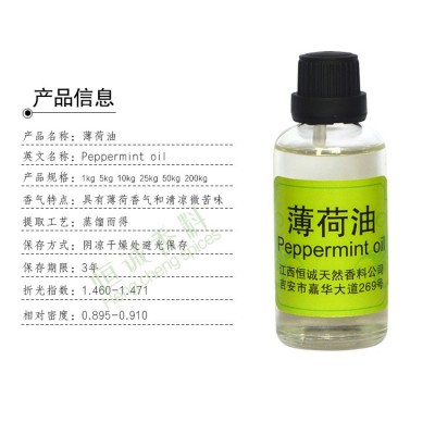 本品为唇形科植物薄荷的新鲜茎和叶经水蒸气蒸馏得油,一般得率为0.3%-0.6%。薄荷油经再冷冻,部分薄荷脱脑取出45%-55%薄荷脑后,加工得到的挥发油为薄荷素油。薄荷油通常在分馏过程中去除头油和后油馏分,这一操作的特征是非常富有可变形的,形成薄荷油的不同风格。馏分去除较大的幅度的薄荷油有时称为脱萜烯油。