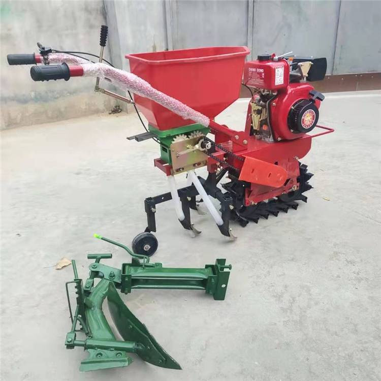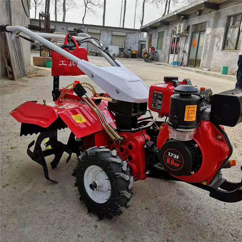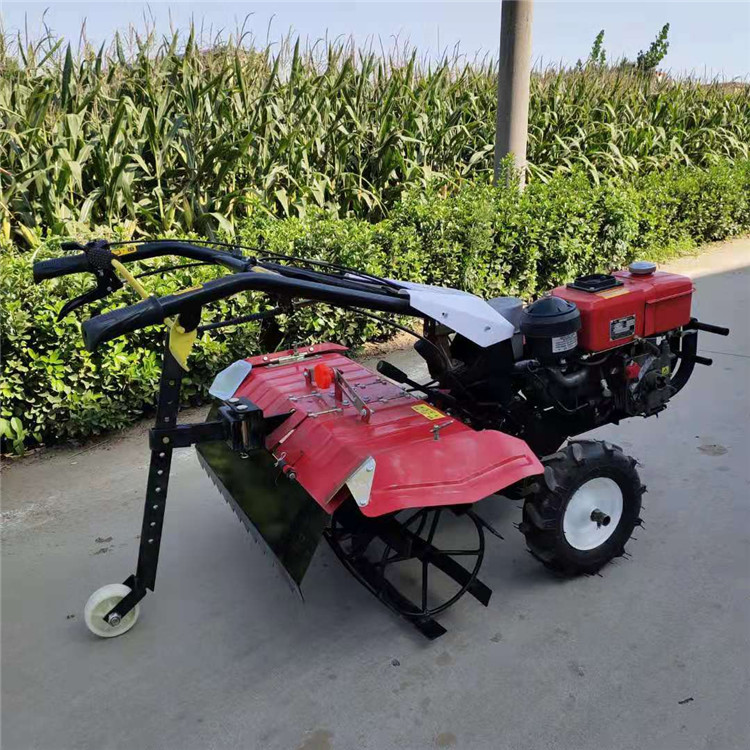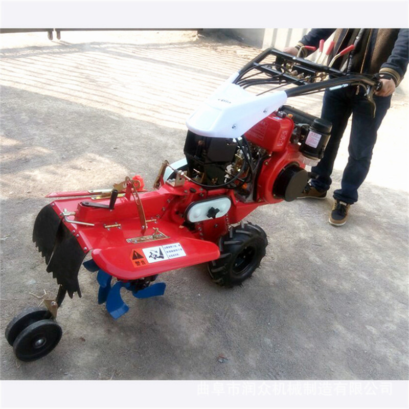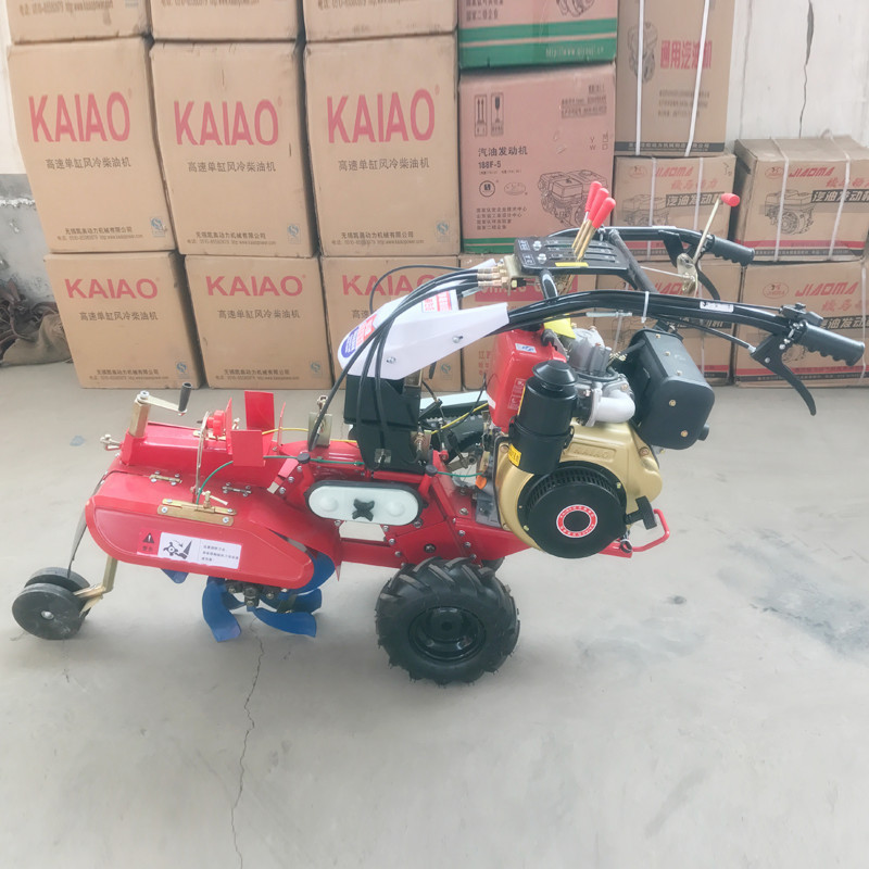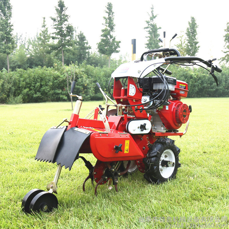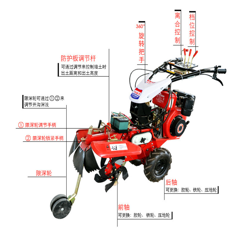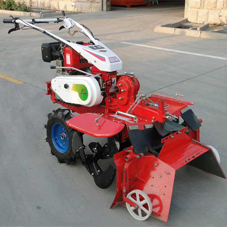 本机器包括机架、可调高低扶手,机架上设有(风冷或水冷)柴油机或汽油机、机架和扶手上设置有变速箱,变速箱的输出轴上设置有能够沿轴移动的驱动轮或链轨.传动方式主要有:全齿轮传动、皮带传动、链条传动三种传动方式.该机具有重量轻,油耗低、相对功率大,结构紧凑、机动性强、操纵轻便灵活的特点。可爬坡、越埂、阶梯性强。广泛适用于平原、山区、丘陵的旱地、水田、果园、菜地、烟地的深旋耕、浅旋耕、犁耕。配上相应机具可进行旱地旋耕、水田旋耕、抽水、开沟、喷淋、喷药除草碎土等作业,还可牵引拖车进行短途运输,是大中型农机无法**的多功能 ,工作稳定可靠、使用寿命长、维修方便等特点。是进入农民家庭理想的田园管理机。自动差速器的田园管理机,可以360度自由转弯,在田间可随意控制方向,极大的方便操作,此外该机采用整体铸造变速箱体,结实耐用,采用干式摩擦离合器,安全可靠。是农民朋友的好帮手