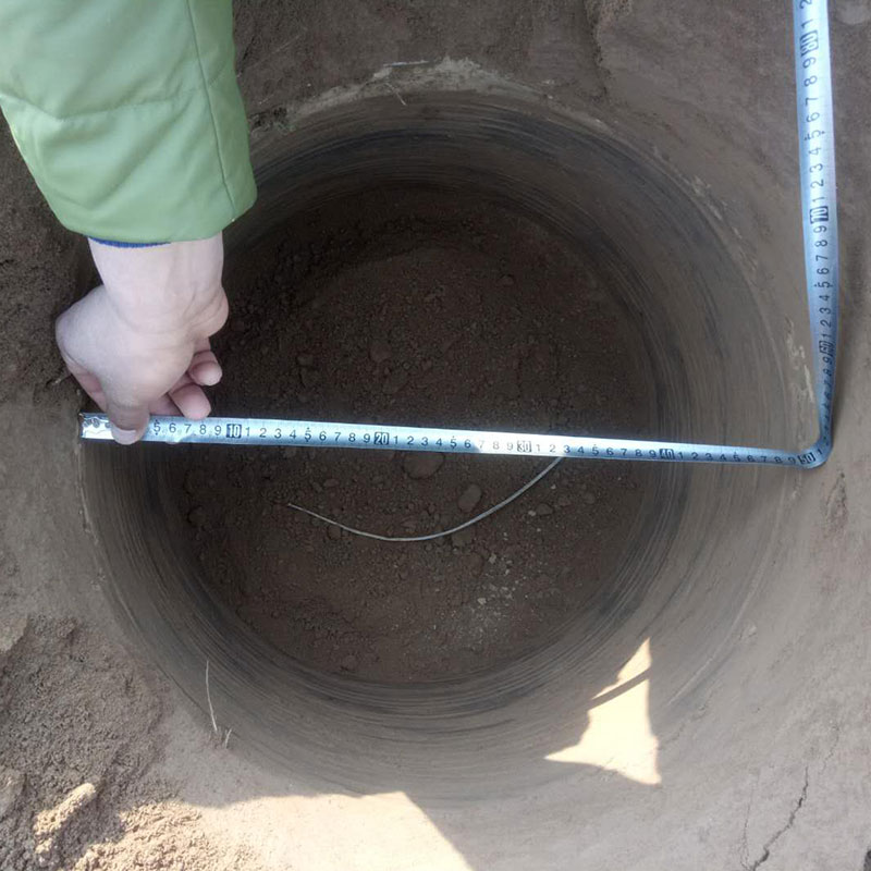 (3)挖到预定深度后,缓慢提起挖坑机,在挖坑机钻头离开地面后,松开工作开关,完成挖坑过程。