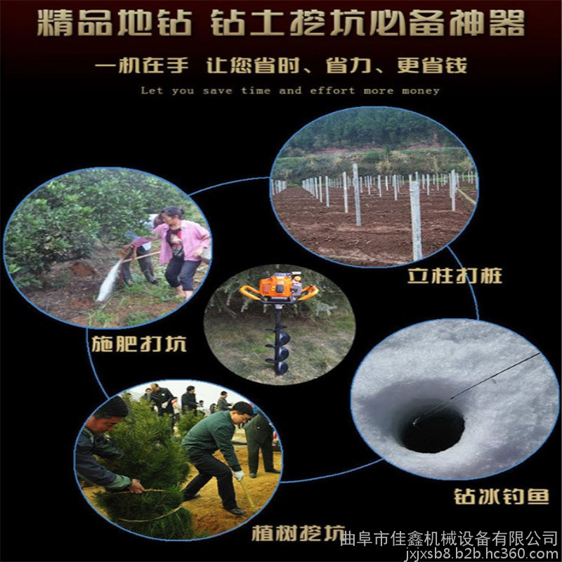 参数: 产品详细描述产品名称:地钻、挖坑机 发动机型号:1E44F-5 发动机形式:风冷单缸二冲程 发动机排量:50.2CC 71CC 发动机功率:1.9kw/7000r/min 齿轮箱配置:采用齿轮二级变速,轴承转动 传动方式:齿轮变速传动 启动方式:手拉反冲起动 燃油比:汽油与二冲程机油25:1 燃油箱容积:1200ml 净重:10.5kg 主要用途: ―各种果树施肥 ―各种树木种植 ―大棚立柱埋设 ―葡萄**桃、香蕉等作物支架、防风架孔 ―冬季冰上垂钓用孔、冬季水产养殖通气孔 ―高速公路、铁路等围栏柱孔 ―单人、双人均可操作使用 拖拉机挖坑机由**拖拉机,机架,传动轴,万向节,减速机组成特殊设计的钻具组成.适合在土地,冻土,冰层上打孔.广泛用于园林,种植,植树,物探,道路建设等领域.配置钻杆采用刀片焊接加强了挖坑效果,出土率达到90%。配备定心钻头。 钻头材质采用锰钢合成更加的坚硬。对硬土质,超硬土质,粘土,冻土等都能对它很有效的实施工作,并能达到**工作要求。该机型设计新颖、灵活、合理,性能稳定可靠,作业效果好、效率高,深受广大用户欢迎。能够让人们从繁重的体力劳动解放出来,广泛应用于植树造林,栽种果林、篱笆、及秋季给果树施肥等。该地钻动力强劲有力,外形美观,操作舒适,劳动强度低,适合各种在平原大面积种植绿化或果树等苗木的栽植打坑作业。有很高的工作效率。 拖拉机挖坑机主要参数: 配套动力(kw) 13.2-58.8 ≥58.8 配套转速(r/min)540 挖穴直径(mm )300 400 500 600 700 800 900 1000 挖穴深度(mm) 800 生产率(穴/h) ≥60 ≥50 质量(kg) ≥150 ≥280 技术参数 配套动力:30-80马力 钻头直径:30-80cm 挖坑深度:80cm 工作效率:4-9个/分钟 免除了中间商,生产者直接与用户见面,简化了流通过程,缩短了流通时间实现了真正的厂家优惠价格。厂家地址:山东省曲阜市王庄开发区!全球诚聘招商中! 诚信提示:首付预付款,即可物流快运,货到后付剩余款!两年内非人为因素,因产品质量机器零配件需要更换的,公司除免费更换外,并承担配件包装、运输费用。有意需求者欢迎随时与我联系:(24小时客服服务)我公司主要生产销售:直销饲料机、颗粒机、粉碎机、打浆机、挖坑机、小型收割机、打捆机、制糁机、碾米机、颗粒机组、自动进料粉碎机、混料机、提升机、田园管理机、高枝锯、绿篱修剪机、松土机、割草机。 佳鑫客服在线QQ:3347767106电话:0537-4490101 手机:13054959872 联系人:李娜