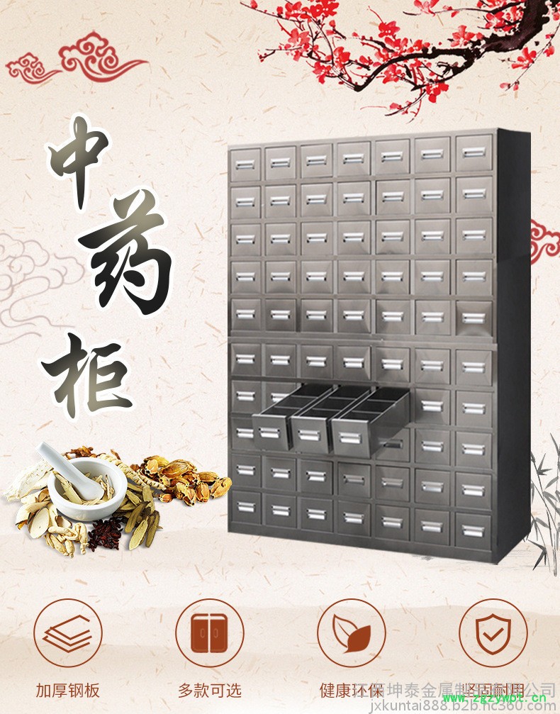 江西宜春钣金件加工 坤泰不锈钢中药柜钢制加厚分类铁皮柜子调剂台多斗储草药柜零件柜药房