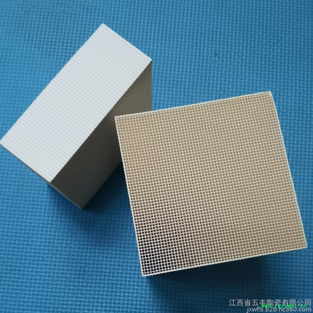 窝陶瓷蓄热体具有耐高温、耐腐蚀、热震稳定性好、强度高、蓄热量大、导热性能好等特点。蓄热式高温空气燃烧是一项具有巨大节能和环保双重功效的燃烧技术,蜂窝陶瓷蓄热体是蓄热式燃烧器的关键部件,用于钢铁、机械、建材、化学、石化、涂料、有色金属冶炼等行业的各种加热炉、热风炉、热处理炉、裂解炉、烘烤器、熔化炉、均热炉、油气锅炉等窑炉中。该技术通过换向装置使两个蓄热室交替吸热放热**地回收烟气的热量,再把炉内的助燃空气和煤气加热到1000℃以上,即使低热值的劣质燃料也能实现稳定着火和高效燃烧,可节省燃料,提高产量,