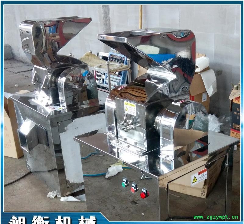 本粉碎机为卧式可倾翻粉碎结构,主要由底座、电机、粉碎室、盖及加料斗组成,加料斗及盖可倾翻一定角度,便于清除粉碎室内的存料及修理。物料由粉碎机料斗进入粉碎室,利用旋转刀与固定刀冲击、剪切而获得粉碎,经旋转离心力的作用,物料自动流向粉碎机出口处。该机按“GMP”标准设计,本粉碎机全部采用不锈钢材料制造,结构简单、清洗方便、噪音低、目前是粗粉碎中最理想的设备。