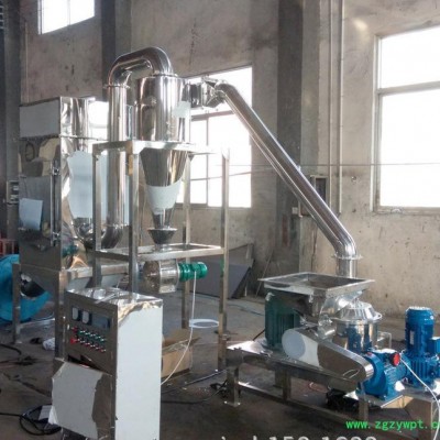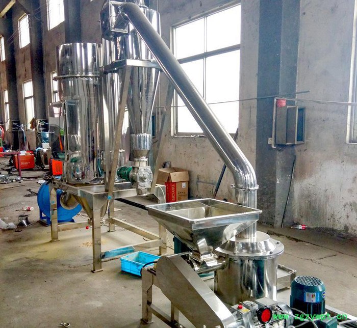 WFJ超微粉碎机组、超细粉碎机、微粉碎机由主机、辅机、电控箱三个部分组成,具有风选式、无筛、无网、粒度大小均匀等多种性能,生产过程连续进行。该机在粉碎作业时主机不升温,可粉碎各种热敏性物料,特别适用于粉碎纤维状和带一定油脂的物料。其综合性能已达到国际先进水平,该机广泛运用于制药、化工、食品(例:中药、食品、化工、保健、根类、径类、玉米、大米、辣椒、胡椒、油麦、大豆、大蒜、八角、桂皮、脱水蔬菜、山楂、干姜、白糖、糖精、粮食类、虾皮、南瓜粉、调料)等工业的物料粉碎。