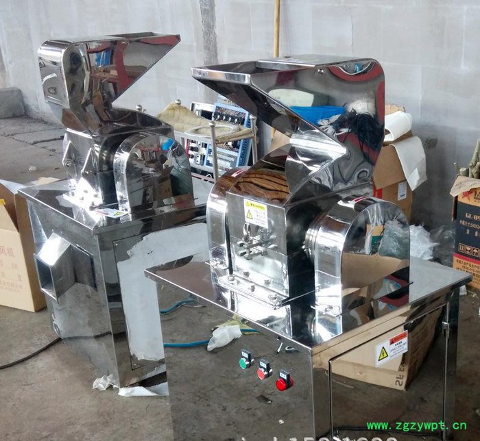 本粉碎机为卧式可倾翻粉碎结构,主要由底座、电机、粉碎室、盖及加料斗组成,加料斗及盖可倾翻一定角度,便于清除粉碎室内的存料及修理。物料由粉碎机料斗进入粉碎室,利用旋转刀与固定刀冲击、剪切而获得粉碎,经旋转离心力的作用,物料自动流向粉碎机出口处。该机按“GMP”标准设计,本粉碎机全部采用不锈钢材料制造,结构简单、清洗方便、噪音低、目前是粗粉碎中最理想的设备。