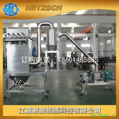本机由主机、辅机、电控箱三个部分组成,设计紧凑,结构合理,具有风选式、无筛无网。机内装有分级结构,能使粉碎,分级一次完成。负压输送使粉碎作业时机腔内产生的热量源源不断地排出,故也适应于热敏性物料地粉碎。本机适用范围甚广,生产过程连续进行,出料粒度可调;能处理如:化学制品、食品、药品、化妆品、染料、树脂、壳物等多种物料的粉碎分级,该机已达到国际先进水平,本机可设计为白炭黑、硫磺、壳聚糖(甲壳素)等特性物料的专用粉碎机,具有产量高、能耗低等优点。