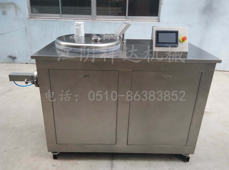 湿法混合制粒机工作原理: 高效湿法混合制粒机将粉体物料与粘合剂在圆筒形或锥形容器中,由底部混合桨充分混合成湿润软材,然后由侧置的高速粉碎桨切割成均匀的湿颗粒。工作时将几种配方的物料一次性加入工作容器,经搅拌混合后注入粘合剂 ,或一种配方的物料与粘合剂一次性加入工作容器,由搅拌桨混合制成软材后,切割绞刀将软材绞碎成粒。高效湿法混合制粒机中带动绞刀的均为双速电机,因而控制粘合剂的溶度、绞刀转速、绞碎时间便可获得不同粒度的颗粒,保证生产药品在批与批之间,其粒度分布、密度、流动性等方面质量达到较高的重复水平按同一程序自动生产,确保产品的制粒质量。