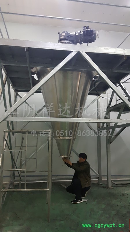 双螺旋锥形混合机产品特点1、 结构先进,操作方便、运行安全可靠,螺旋轴无底部轴承,它清除了因底部轴承的漏粉而引起的故障。2、 混合速度快,混合质量均匀。本机双螺旋为非对称排列,一大一小扩大搅拌范围,因而对比重悬殊,混合配比特殊的混料混合更为适合。混合时间短,混合均匀度高,出料干净3、 节能效果显著,本机与滚筒式混合机相比能耗仅其十分之一左右。4、 混合过程温和,物料不会产生压馈、磨损、过热现象。5、 混合后的制剂稳定,不发生分层及离析现象。6、双螺旋锥形混合机 密封无尘,操作简单,维修方便。使用寿命长,还可根据用户要求,将锥体制成压力容器进行加压可真空操作。