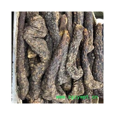 【性        状】:本品肉质茎,呈长圆柱形或下部稍扁,略弯曲,长3-375px,下部较粗,直径5-375px;向上渐细,直径2-375px。表面灰棕色或棕褐色,密被覆瓦状排列的肉质鳞片,鳞片菱形或三角形,厚约5px,宽0.5-37.5px。并可见鳞片脱落后留下的叶迹呈弯月形。质坚硬,不易折断。断面棕色,有谈棕色点状维管束,深波状或锯齿状环列。木质部约占4/5,有时中空。表面和断面在亮光处可见结晶样小亮点。传统认为以肥大肉质、黑棕色、油性大、质柔润者为佳。