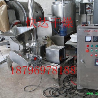 该种系列超微粉碎机,由主机、辅机、电控三个部份组成,设计紧凑、结构合理、具有风选式,无筛无网。机内装有分级机构,能使粉碎,分级一次完成。负压输送使粉碎作业时机腔内产生的热量源源不断地排出,故也适应于热敏性物料的粉碎。本机适应范围广,生产过程连续进行,出料细度可调;能处理如:化学制品、食品、化妆品、染料、树脂、壳物等多种物料的粉碎及分级。