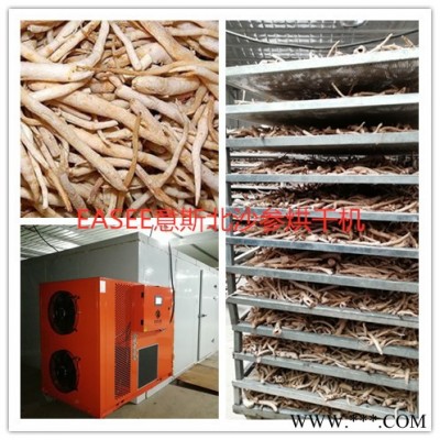 传统的北沙参干制的方法是晒干、传统烧煤锅炉、电加热等几种,对于切片的北沙参容易晒干,但整根的北沙参却不容易晒干,容易霉变,品质较差。而锅炉烘房虽然解决北沙参无法晒干的问题,但对于中药材来说,容易对北沙参造成污染。而电加热消耗电量较大,也逐步被节能环保的空气能热泵烘干机所取代。