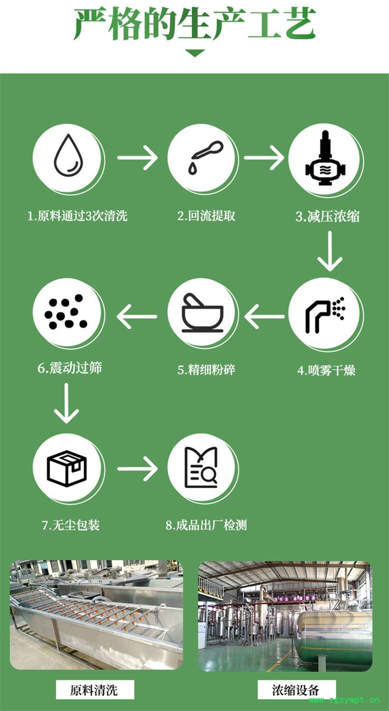 我厂生产提取物原料,采用高质量原材料进行生产。每个生产流程都严格把控,再确保每样产品都是合格后,方可出厂销售!客户的满意**是我们一贯的追求!