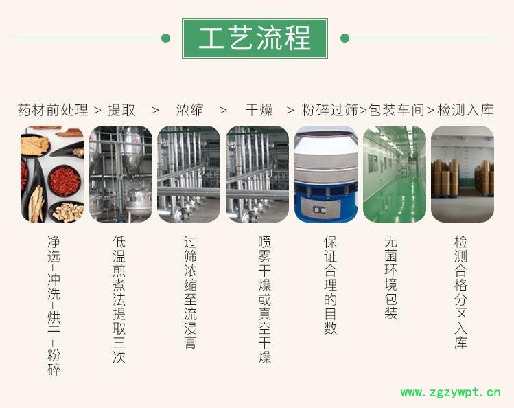 【生产工艺】原料清洗、提取(水/乙醇)、过滤、浓缩、喷雾干燥、过筛、包装