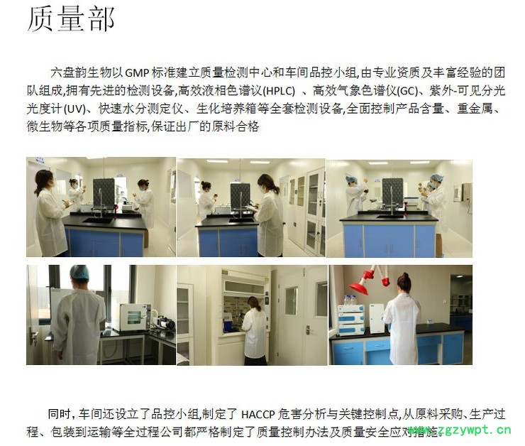 质量部配备了高效液相色谱仪、紫外分光光度计、水份测定仪、定砷仪、灰分分析仪等先进检测仪器