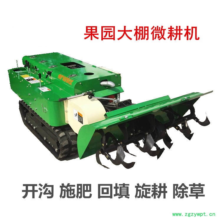 多功能 履带式开沟施肥机安装上不同的配件可以进行单独旋耕、回填、单独开沟、施肥、也可混合搭配使用。产品结实耐用,性能优越,操作方便.耐用:机身加厚,密,履带式行走,可进行原地转向。刀具都是加厚75号猛钢锻造,非常耐磨耐用,工作效率高,该机器体积小,操作灵便,可原地转向,分高低6个前进档位和2个倒退档位。