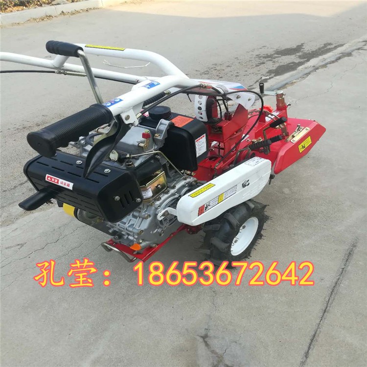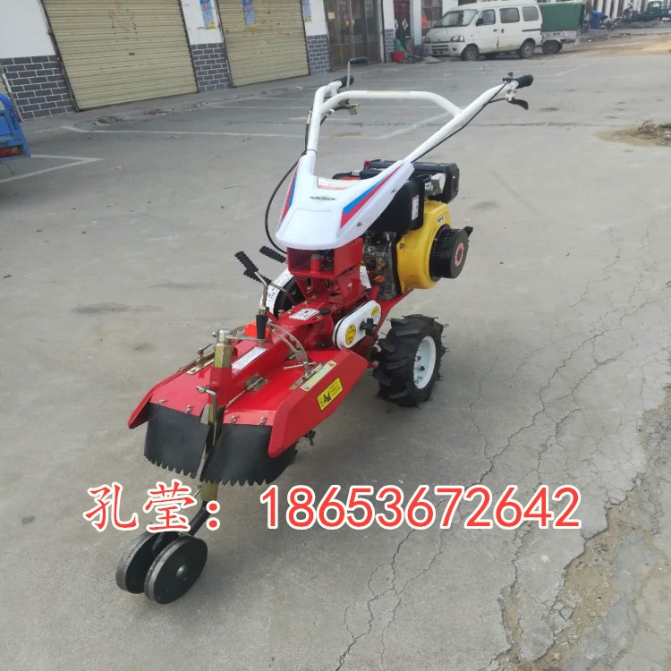 操作方便:人性化设计,操作手把灵活,可上下调整高度,并可360度旋转,适合在任何方向操作,省力。小巧灵活:机器宽度**小是38厘米,高70厘米,长1.2米,重80-120公斤,非常小巧灵活,省事。适用性强:适用各种山地,丘陵、平原、旱田、水田、大棚、果园、及狭窄地作业,省心。标配技术参数:开沟宽度:20-40cm(可调)开沟深度10-40cm培土高度40cm培土作物间距50-80cm起垄作业技术:起垄宽度10-40cm 起垄高度30-50cm旋耕作业技术参数:旋耕宽度40cm(可调)旋耕深度5-20cm配套动力:柴油机8匹——10匹 (电启动和手动启动)汽油机7.5匹——13匹标准配置为:配三套开沟培土刀 三套轮:行走轮、作业轮、胶轮