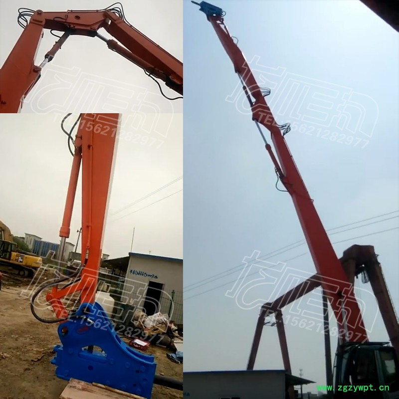 斗山300日立330挖掘机20米拆楼加长臂三节臂 Q345B锰钢制作 药芯焊丝焊接 可根据需求定做15-26米