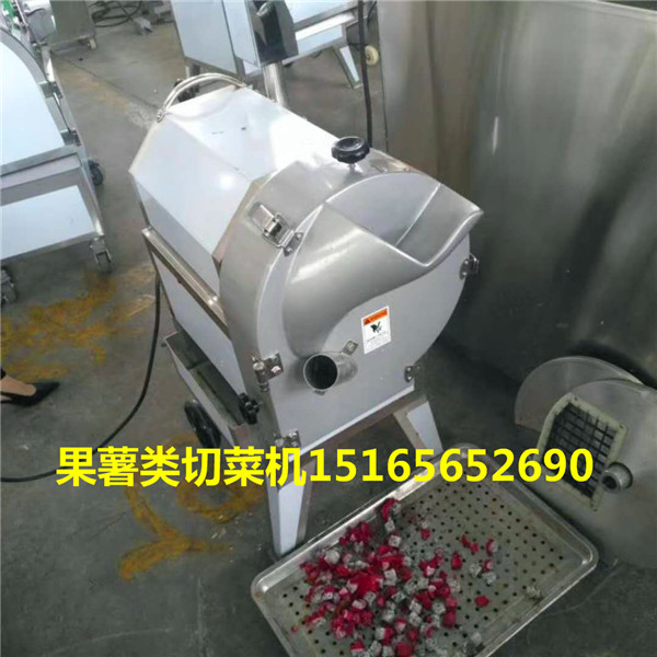 【佳品机械15165652690水果丁设备 洋葱切丁机切方机山东佳品机械】切丁机使用前应将物料洗净去杂,如果被切的物料混有沙石或泥块,刀刃口与刀板容易损坏和磨钝。物料**大切割直径不超过80mm,如果大于此直径须切成小块。将被切物料从料斗投入壳体,在拨盘的作用下,被立刀切割成所要求的厚度,接着被圆盘切丝刀切成条状**被横切刀切成方块。