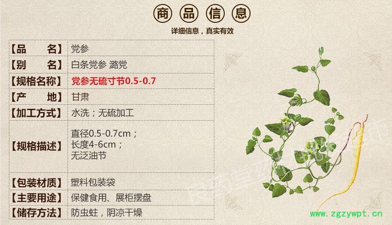 【满298元包邮】党参 甘肃寸节中条 产地 甘肃省 1袋500克
