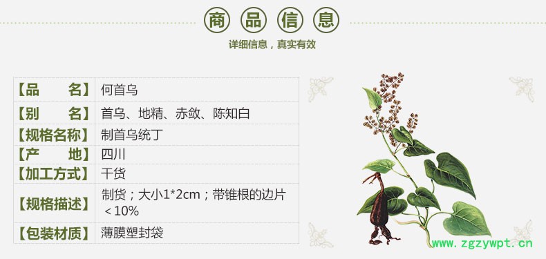 规格等级:制首乌统丁