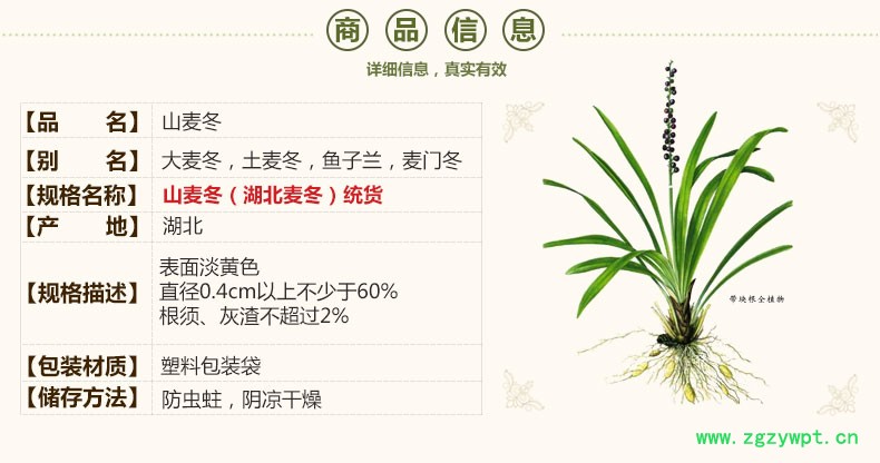 规格等级:山麦冬(湖北麦冬)统货