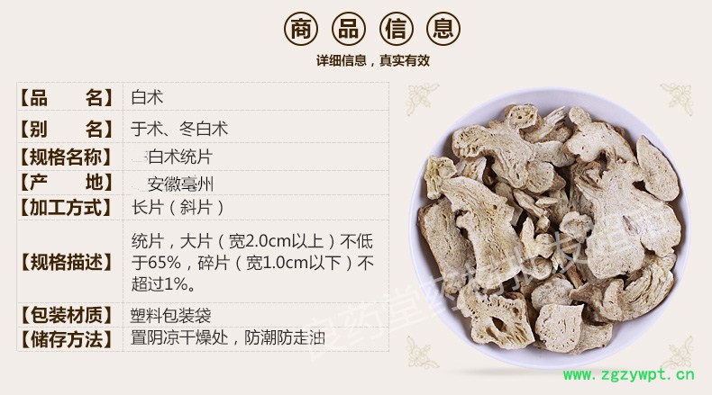 规格等级:2年生白术长片统片